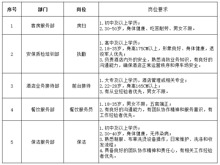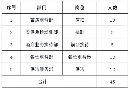 根據(jù)工作需要,鑫富源人力資源集團公開招聘45名酒店工作人員,并外派至汾酒國際大酒店工作,現(xiàn)將有關事項公告如下: