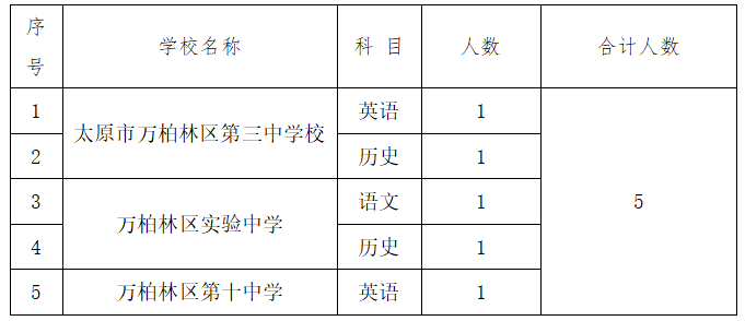 因太原市萬柏林區第三中學校、萬柏林區實驗中學、萬柏林區第十中學教師未招滿,為滿足我區部分中學校教學需要,結合學校實際,現面向社會為以上學校補充招聘政府購買服務教師,具體公告如下: